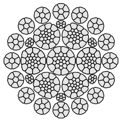 Alakított külső és belső pászmás, acélbetétes acélsodronykötél daruhoz.